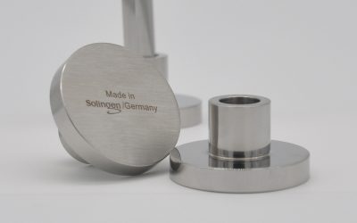 RMK Solingen Rasierhobelständer, aus massivem Edelstahl gedreht, poliert.