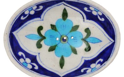 Keramik, glasiert und handbemalt, mit Löchern für den Wasserablauf, so liegt ihre Seife trocken