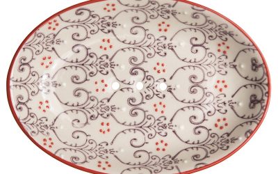 Keramik, glasiert und handbemalt, mit Löchern für den Wasserablauf, so liegt ihre Seife trocken